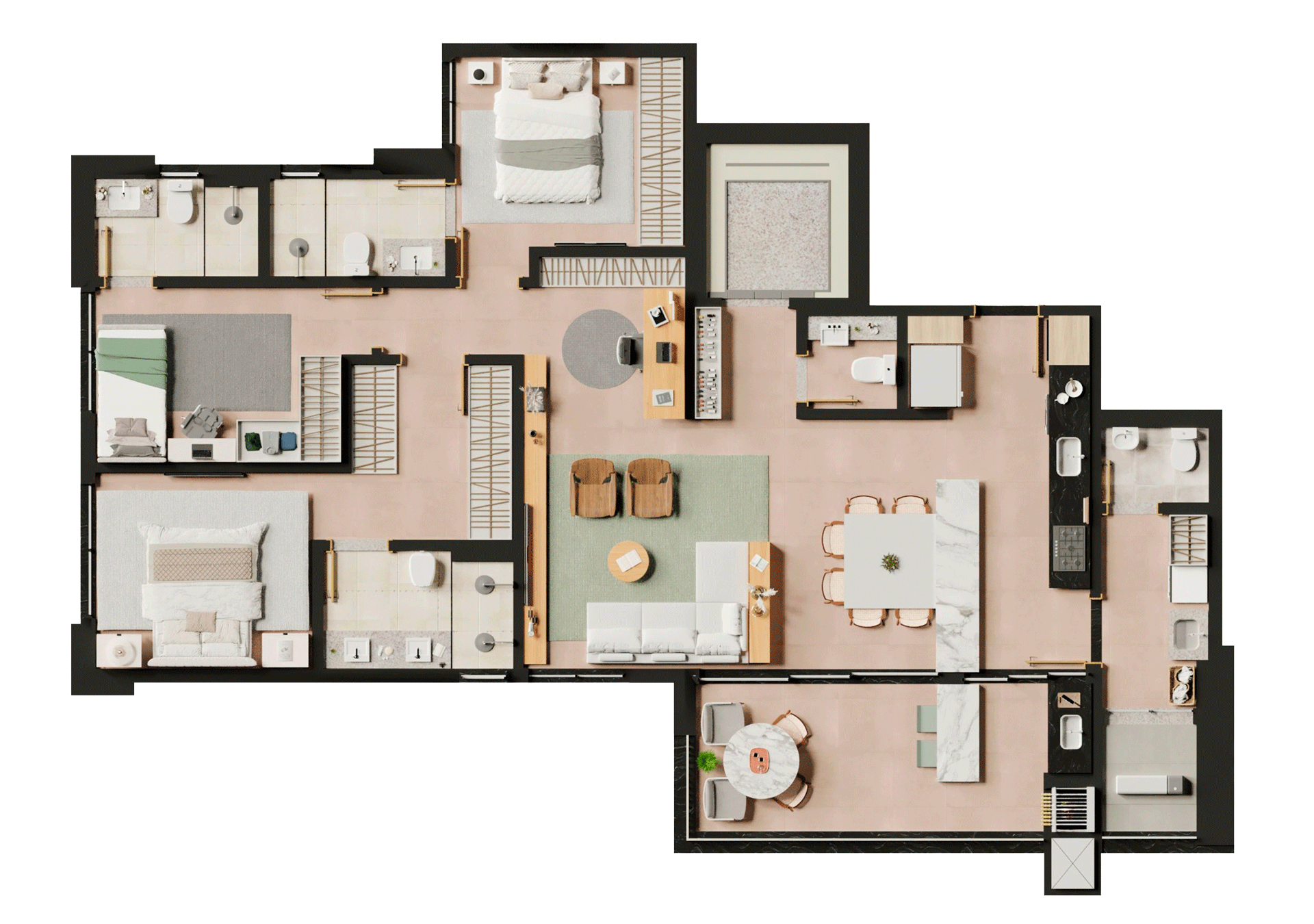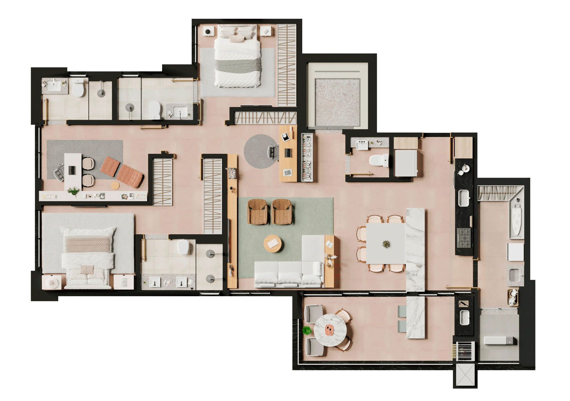 Elementos, traços, cores e texturas se unem a todo padrão de qualidade e DNA inovador da Consciente em uma reserva exclusiva no Bueno.