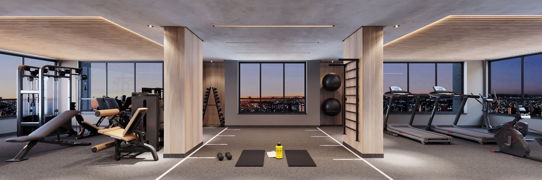 O RESERVA 27 CONTA COM A ACADEMIA MAIS ALTA DO BUENO, ENTREGUE COM OS MELHORES EQUIPAMENTOS. A 122 METROS DE ALTURA COM VISTA PANORÂMICA 180º DA CIDADE, SUA SAÚDE GANHA UMA NOVA EXPERIÊNCIA.